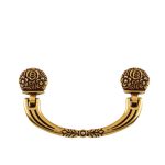 دستگیره در رنگ پتینه طلایی قابل ارائه می باشد. از محصولات با کیفیت و با طراحی بسیار زیبا و ساده می باشد. به خاطر طراحی زیبا یراق این دستگیره را در دسته کلاسیک قرار میدهد. این دستگیره از جنس زاماک و سایز 96 و64 می باشد.